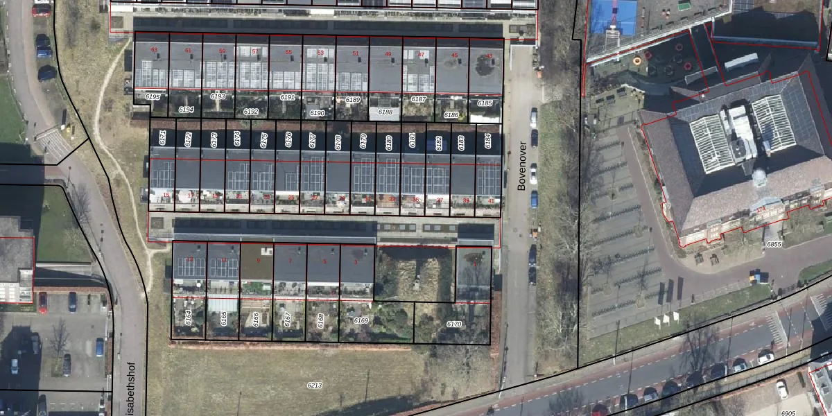 Gebruik de zoekbalk of klik op een perceel voor informatie over de adressen binnen dit perceel.