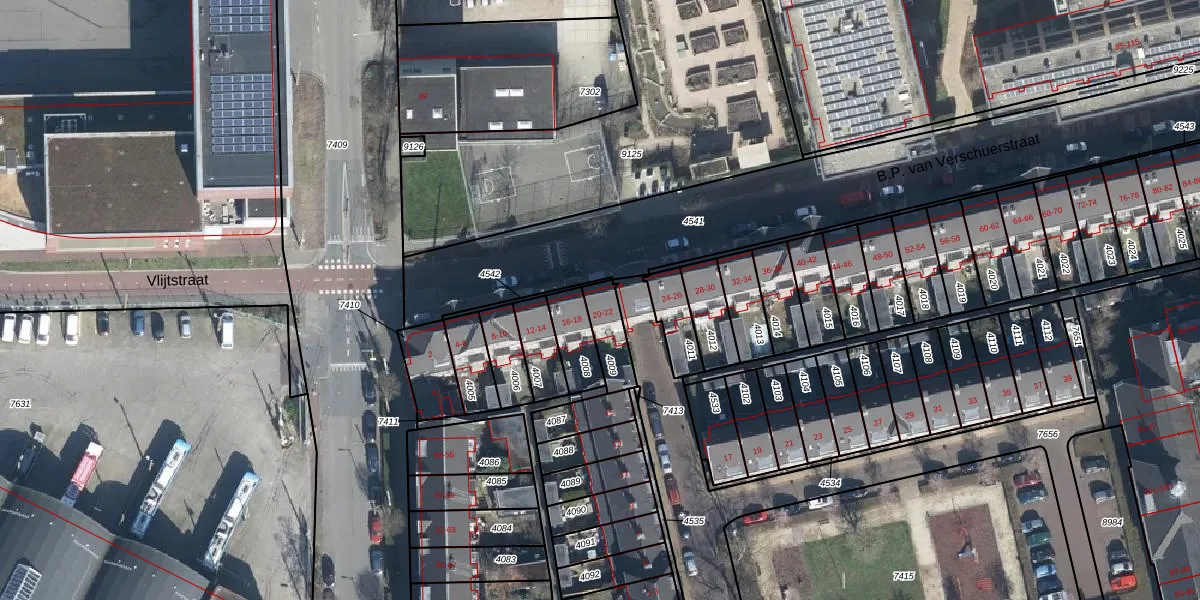 Het perceel waarop B.P. van Verschuerstraat 20 staat heeft een oppervlakte van 95 m². Dit is een klein perceel. De perceeloppervlakte wordt geregistreerd door het Kadaster. Gedetailleerde informatie over de maten van dit perceel kunt u vinden in het rapport Kadastrale kaart met maatvoering van B.P. van Verschuerstraat 20.