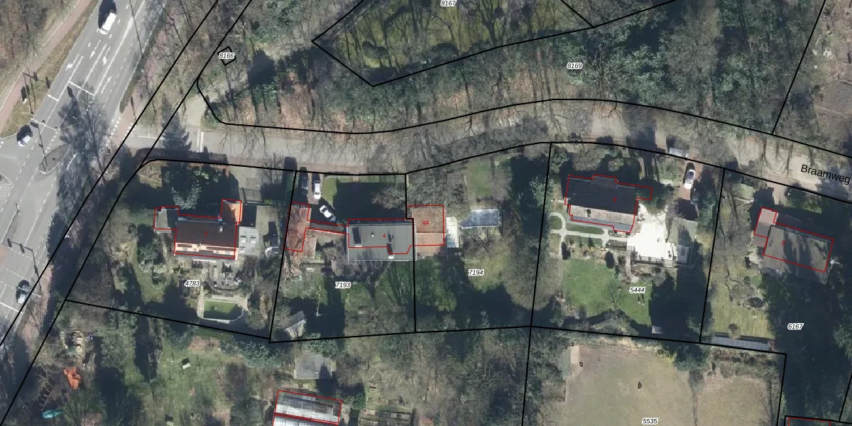 Het perceel waarop Braamweg 4-A staat heeft een oppervlakte van 1237 m². Dit is een zeer groot perceel. De perceeloppervlakte wordt geregistreerd door het Kadaster. Gedetailleerde informatie over de maten van dit perceel kunt u vinden in het rapport Kadastrale kaart met maatvoering van Braamweg 4-A.