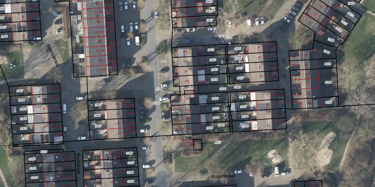 Gebruik de zoekbalk of klik op een perceel voor informatie over de adressen binnen dit perceel.