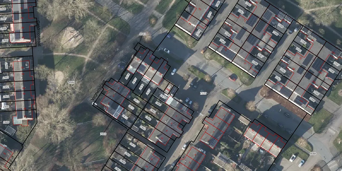 Gebruik de zoekbalk of klik op een perceel voor informatie over de adressen binnen dit perceel.