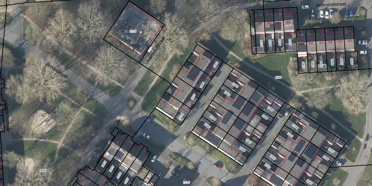 Gebruik de zoekbalk of klik op een perceel voor informatie over de adressen binnen dit perceel.