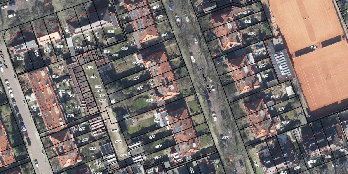 Gebruik de zoekbalk of klik op een perceel voor informatie over de adressen binnen dit perceel.