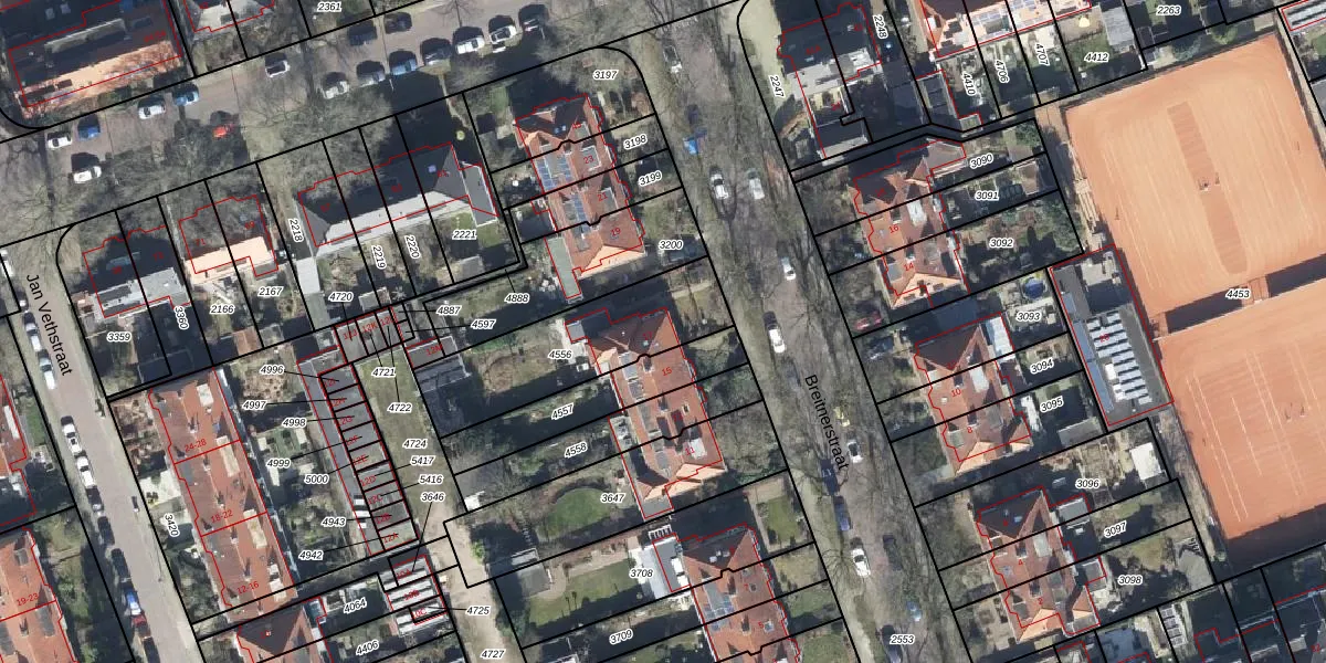 Gebruik de zoekbalk of klik op een perceel voor informatie over de adressen binnen dit perceel.
