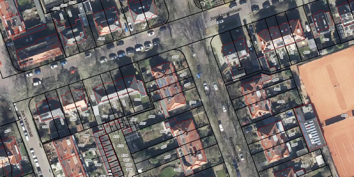 Het perceel waarop Breitnerstraat 21 staat heeft een oppervlakte van 152 m². Dit is een middelgroot perceel. De perceeloppervlakte wordt geregistreerd door het Kadaster. Gedetailleerde informatie over de maten van dit perceel kunt u vinden in het rapport Kadastrale kaart met maatvoering van Breitnerstraat 21.