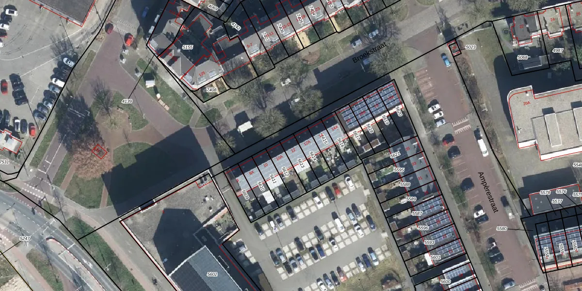 Het perceel waarop Broekstraat 12 staat heeft een oppervlakte van 108 m². Dit is een middelgroot perceel. De perceeloppervlakte wordt geregistreerd door het Kadaster. Gedetailleerde informatie over de maten van dit perceel kunt u vinden in het rapport Kadastrale kaart met maatvoering van Broekstraat 12.