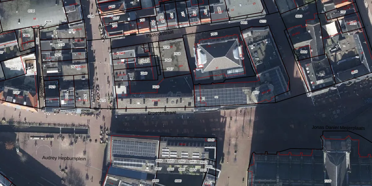 Het perceel waarop Broerenstraat 35 staat heeft een oppervlakte van 690 m². Dit is een groot perceel. De perceeloppervlakte wordt geregistreerd door het Kadaster. Gedetailleerde informatie over de maten van dit perceel kunt u vinden in het rapport Kadastrale kaart met maatvoering van Broerenstraat 35.
