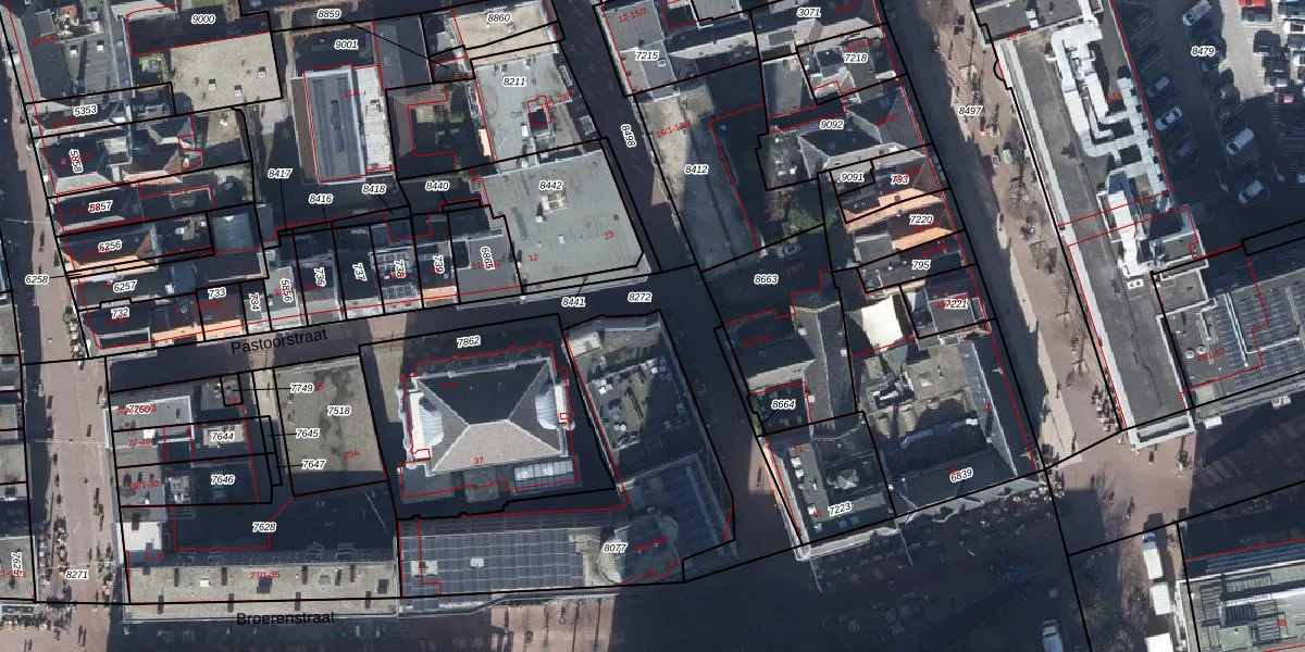 Het perceel waarop Broerenstraat 39-12 staat heeft een oppervlakte van 1085 m². Dit is een zeer groot perceel. De perceeloppervlakte wordt geregistreerd door het Kadaster. Gedetailleerde informatie over de maten van dit perceel kunt u vinden in het rapport Kadastrale kaart met maatvoering van Broerenstraat 39-12.