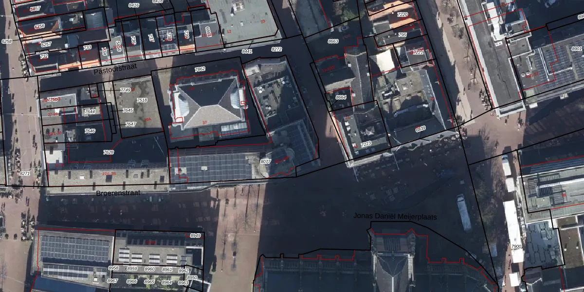 Het perceel waarop Broerenstraat 39-E staat heeft een oppervlakte van 1085 m². Dit is een zeer groot perceel. De perceeloppervlakte wordt geregistreerd door het Kadaster. Gedetailleerde informatie over de maten van dit perceel kunt u vinden in het rapport Kadastrale kaart met maatvoering van Broerenstraat 39-E.