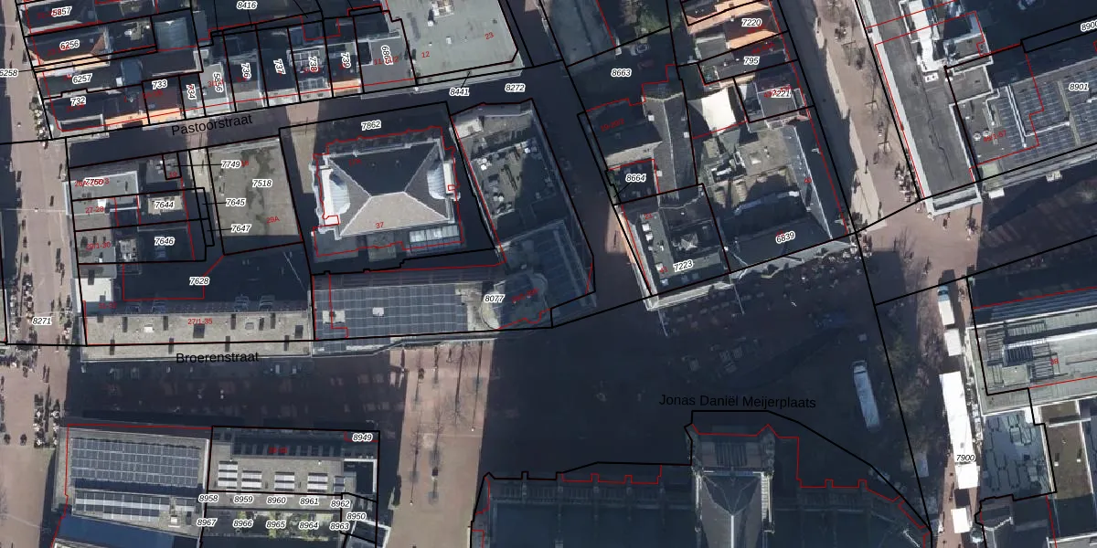 Het perceel waarop Broerenstraat 39-L staat heeft een oppervlakte van 1085 m². Dit is een zeer groot perceel. De perceeloppervlakte wordt geregistreerd door het Kadaster. Gedetailleerde informatie over de maten van dit perceel kunt u vinden in het rapport Kadastrale kaart met maatvoering van Broerenstraat 39-L.