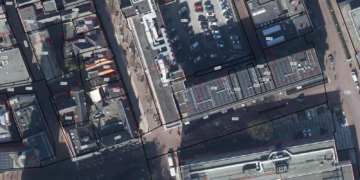 Het perceel waarop Broerenstraat 45-16 staat heeft een oppervlakte van 840 m². Dit is een groot perceel. De perceeloppervlakte wordt geregistreerd door het Kadaster. Gedetailleerde informatie over de maten van dit perceel kunt u vinden in het rapport Kadastrale kaart met maatvoering van Broerenstraat 45-16.