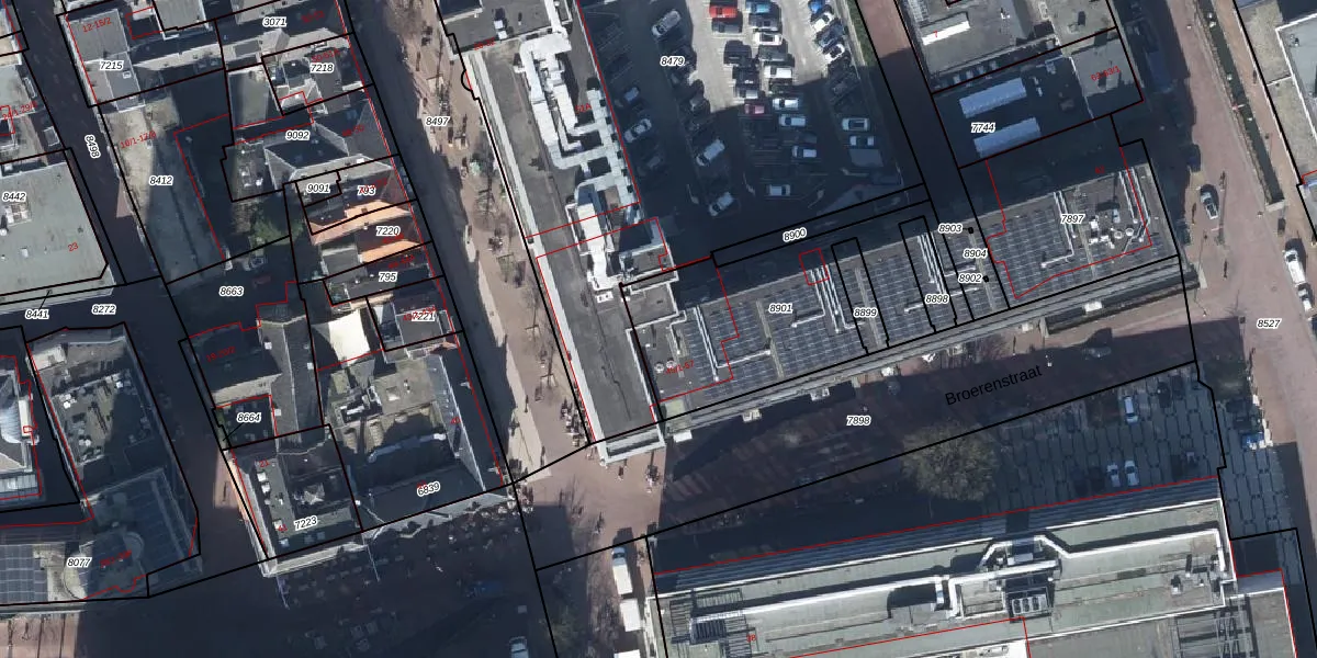 Het perceel waarop Broerenstraat 45-31 staat heeft een oppervlakte van 840 m². Dit is een groot perceel. De perceeloppervlakte wordt geregistreerd door het Kadaster. Gedetailleerde informatie over de maten van dit perceel kunt u vinden in het rapport Kadastrale kaart met maatvoering van Broerenstraat 45-31.