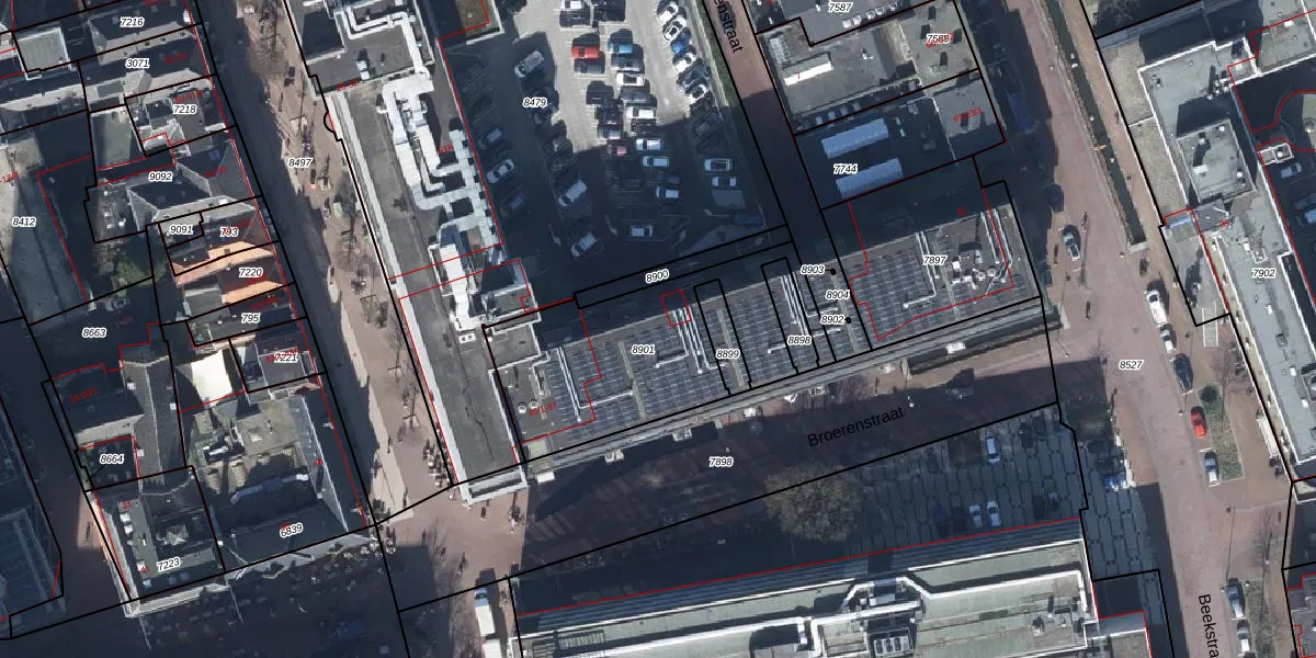 Het perceel waarop Broerenstraat 45-35 staat heeft een oppervlakte van 840 m². Dit is een groot perceel. De perceeloppervlakte wordt geregistreerd door het Kadaster. Gedetailleerde informatie over de maten van dit perceel kunt u vinden in het rapport Kadastrale kaart met maatvoering van Broerenstraat 45-35.