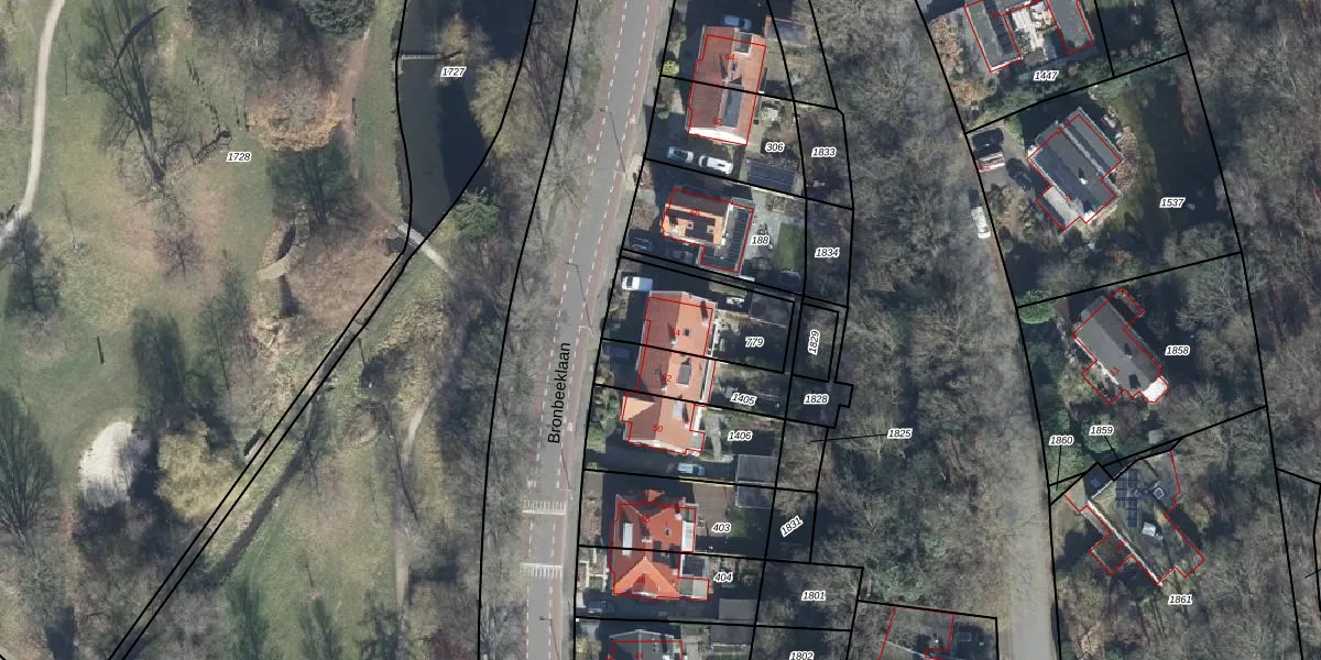 Het perceel waarop Bronbeeklaan 54 staat heeft een oppervlakte van 320 m². Dit is een groot perceel. De perceeloppervlakte wordt geregistreerd door het Kadaster. Gedetailleerde informatie over de maten van dit perceel kunt u vinden in het rapport Kadastrale kaart met maatvoering van Bronbeeklaan 54.