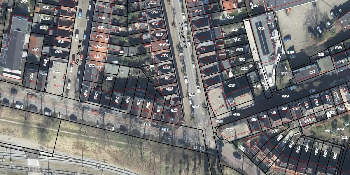 Het perceel waarop Brouwerijweg 9 staat heeft een oppervlakte van 67 m². Dit is een klein perceel. De perceeloppervlakte wordt geregistreerd door het Kadaster. Gedetailleerde informatie over de maten van dit perceel kunt u vinden in het rapport Kadastrale kaart met maatvoering van Brouwerijweg 9.