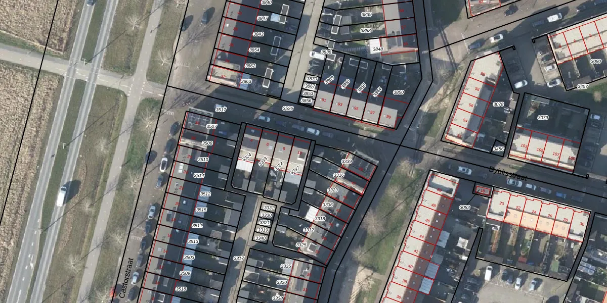 Gebruik de zoekbalk of klik op een perceel voor informatie over de adressen binnen dit perceel.