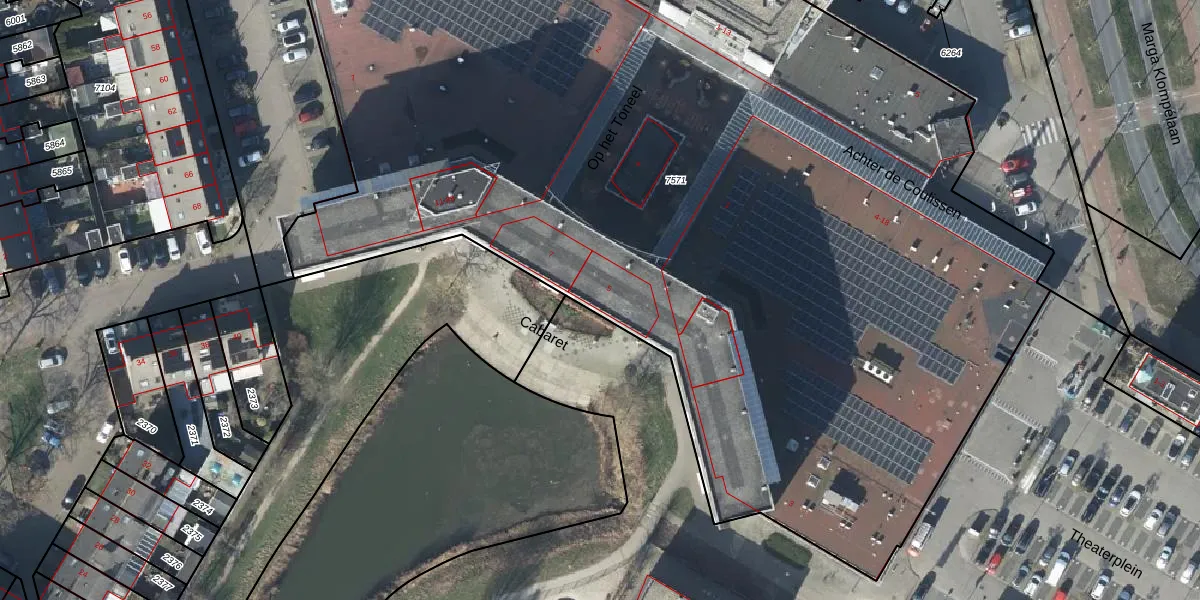Het perceel waarop Cabaret 21 staat heeft een oppervlakte van 8325 m². Dit is een zeer groot perceel. De perceeloppervlakte wordt geregistreerd door het Kadaster. Gedetailleerde informatie over de maten van dit perceel kunt u vinden in het rapport Kadastrale kaart met maatvoering van Cabaret 21.