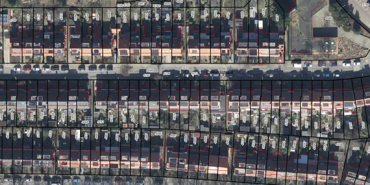 Gebruik de zoekbalk of klik op een perceel voor informatie over de adressen binnen dit perceel.