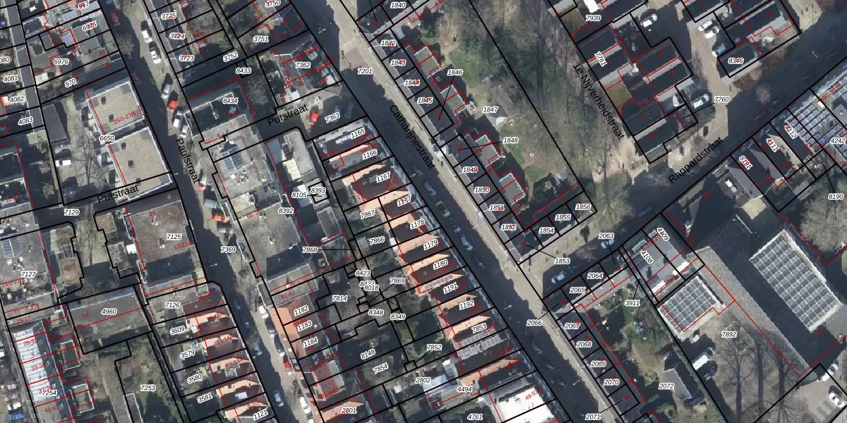 Het perceel waarop Catharijnestraat 83 staat heeft een oppervlakte van 63 m². Dit is een klein perceel. De perceeloppervlakte wordt geregistreerd door het Kadaster. Gedetailleerde informatie over de maten van dit perceel kunt u vinden in het rapport Kadastrale kaart met maatvoering van Catharijnestraat 83.