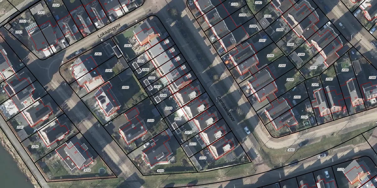 Gebruik de zoekbalk of klik op een perceel voor informatie over de adressen binnen dit perceel.