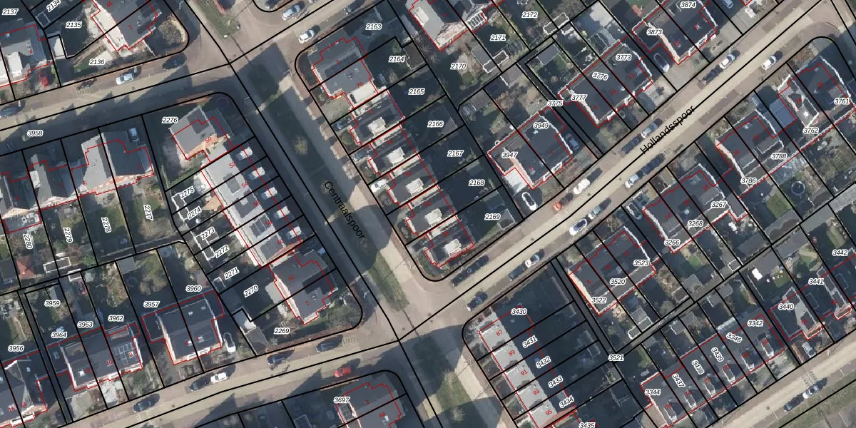 Gebruik de zoekbalk of klik op een perceel voor informatie over de adressen binnen dit perceel.