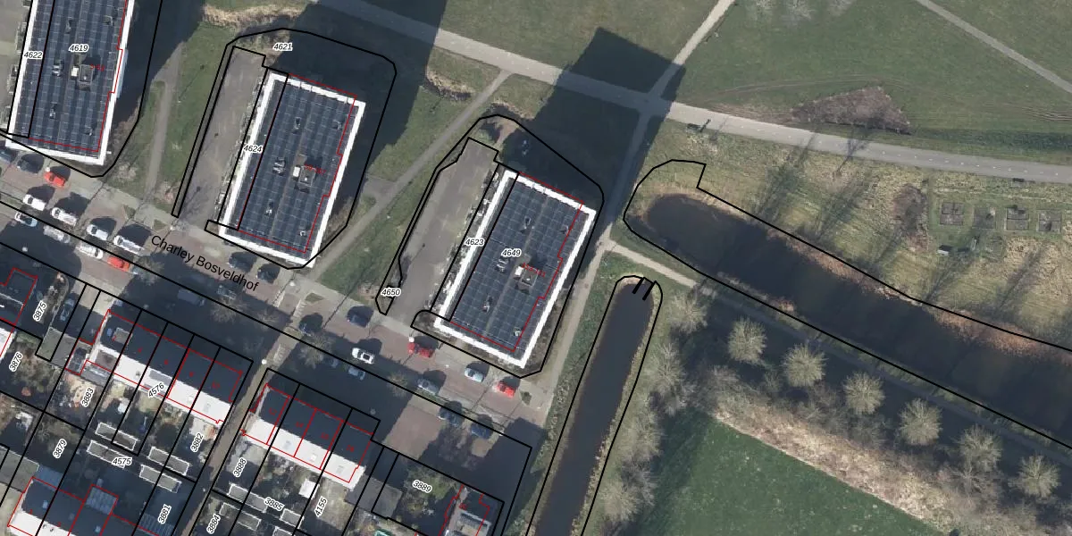 Charley Bosveldhof 121 is gelegen op kadastraal perceel AHM01W4649. Deze kadastrale aanduiding is uniek en wordt gebruikt door het Kadaster om eigendomsrechten en andere zakelijke rechten vast te leggen. Het perceel maakt onderdeel uit van de kadastrale gemeente Arnhem.