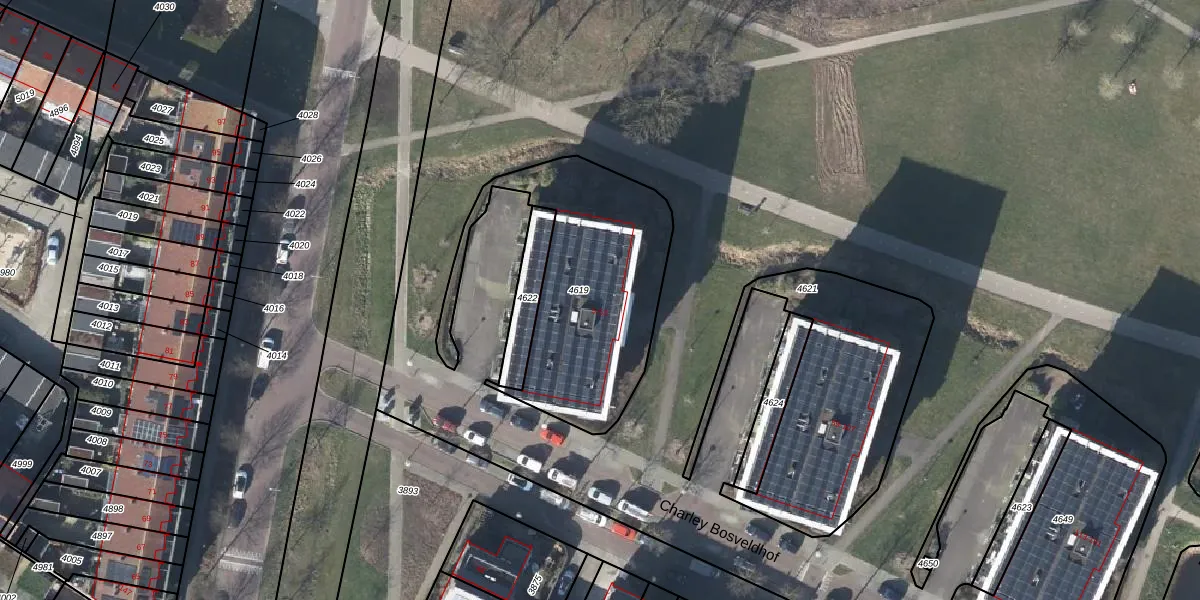 Charley Bosveldhof 13 is gelegen op kadastraal perceel AHM01W4619. Deze kadastrale aanduiding is uniek en wordt gebruikt door het Kadaster om eigendomsrechten en andere zakelijke rechten vast te leggen. Het perceel maakt onderdeel uit van de kadastrale gemeente Arnhem.