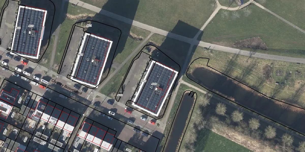 Het perceel waarop Charley Bosveldhof 159 staat heeft een oppervlakte van 860 m². Dit is een groot perceel. De perceeloppervlakte wordt geregistreerd door het Kadaster. Gedetailleerde informatie over de maten van dit perceel kunt u vinden in het rapport Kadastrale kaart met maatvoering van Charley Bosveldhof 159.