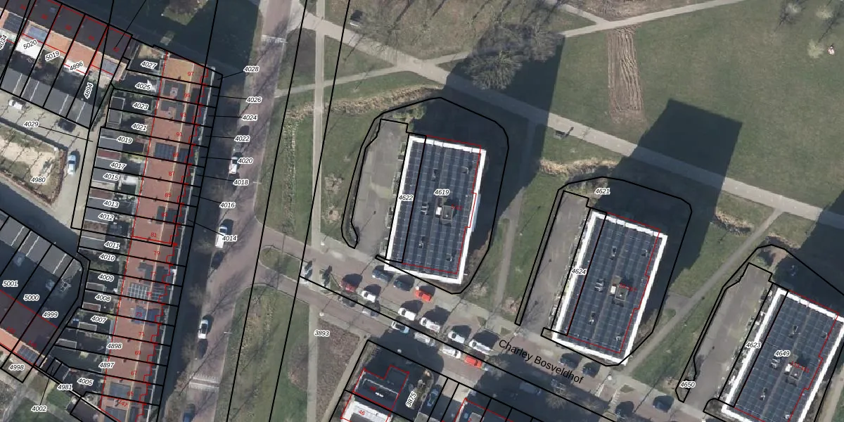 Charley Bosveldhof 43 is gelegen op kadastraal perceel AHM01W4619. Deze kadastrale aanduiding is uniek en wordt gebruikt door het Kadaster om eigendomsrechten en andere zakelijke rechten vast te leggen. Het perceel maakt onderdeel uit van de kadastrale gemeente Arnhem.