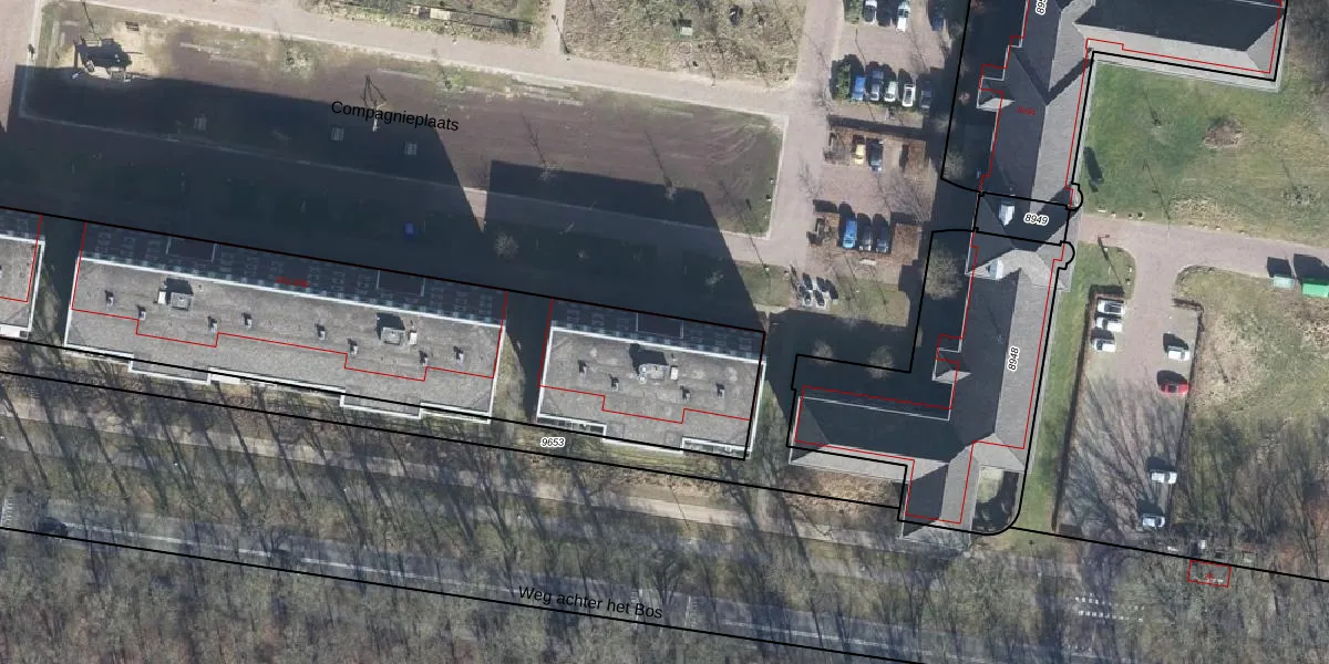 Het perceel waarop Compagnieplaats 111 staat heeft een oppervlakte van 2970 m². Dit is een zeer groot perceel. De perceeloppervlakte wordt geregistreerd door het Kadaster. Gedetailleerde informatie over de maten van dit perceel kunt u vinden in het rapport Kadastrale kaart met maatvoering van Compagnieplaats 111.