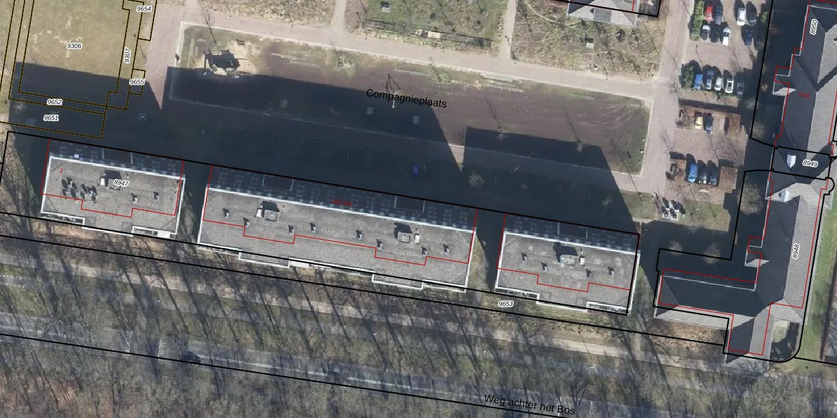 Het perceel waarop Compagnieplaats 143 staat heeft een oppervlakte van 2970 m². Dit is een zeer groot perceel. De perceeloppervlakte wordt geregistreerd door het Kadaster. Gedetailleerde informatie over de maten van dit perceel kunt u vinden in het rapport Kadastrale kaart met maatvoering van Compagnieplaats 143.