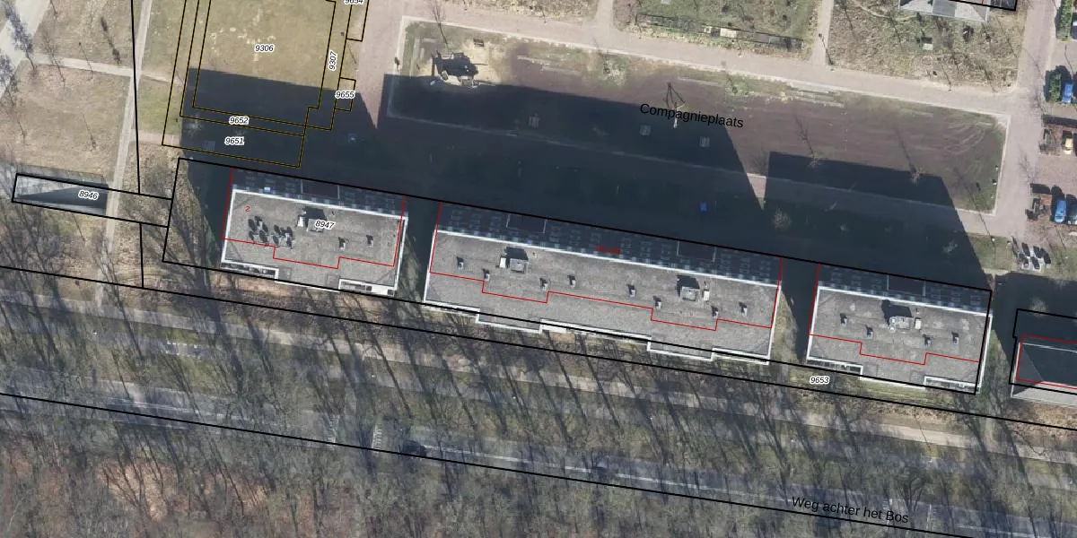 Het perceel waarop Compagnieplaats 189 staat heeft een oppervlakte van 2970 m². Dit is een zeer groot perceel. De perceeloppervlakte wordt geregistreerd door het Kadaster. Gedetailleerde informatie over de maten van dit perceel kunt u vinden in het rapport Kadastrale kaart met maatvoering van Compagnieplaats 189.
