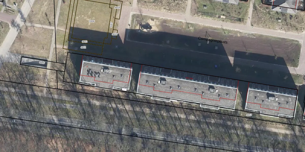 Het perceel waarop Compagnieplaats 207 staat heeft een oppervlakte van 2970 m². Dit is een zeer groot perceel. De perceeloppervlakte wordt geregistreerd door het Kadaster. Gedetailleerde informatie over de maten van dit perceel kunt u vinden in het rapport Kadastrale kaart met maatvoering van Compagnieplaats 207.