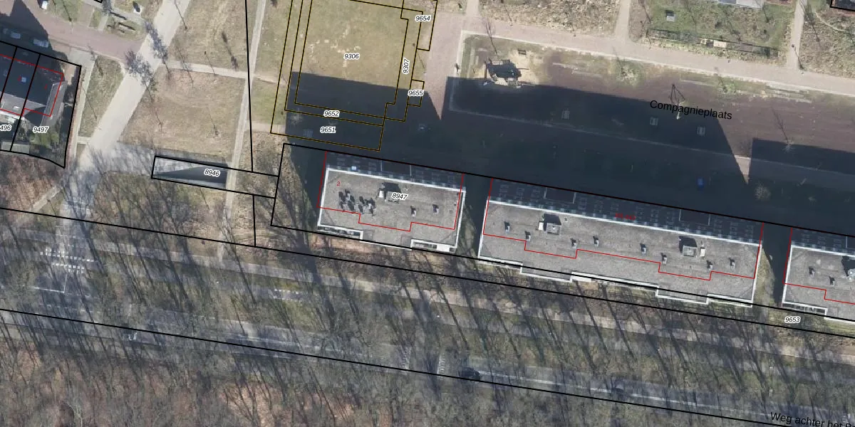 Het perceel waarop Compagnieplaats 221 staat heeft een oppervlakte van 2970 m². Dit is een zeer groot perceel. De perceeloppervlakte wordt geregistreerd door het Kadaster. Gedetailleerde informatie over de maten van dit perceel kunt u vinden in het rapport Kadastrale kaart met maatvoering van Compagnieplaats 221.