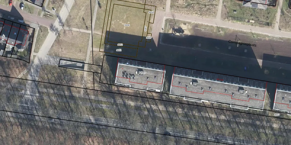 Het perceel waarop Compagnieplaats 227 staat heeft een oppervlakte van 2970 m². Dit is een zeer groot perceel. De perceeloppervlakte wordt geregistreerd door het Kadaster. Gedetailleerde informatie over de maten van dit perceel kunt u vinden in het rapport Kadastrale kaart met maatvoering van Compagnieplaats 227.