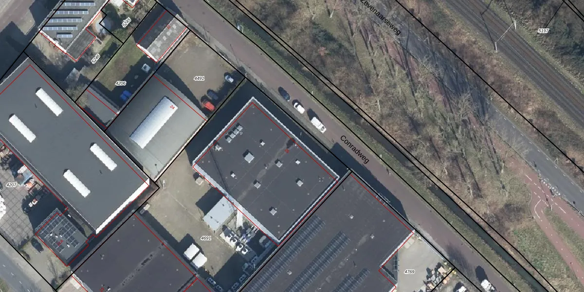 Het perceel waarop Conradweg 26 staat heeft een oppervlakte van 4747 m². Dit is een zeer groot perceel. De perceeloppervlakte wordt geregistreerd door het Kadaster. Gedetailleerde informatie over de maten van dit perceel kunt u vinden in het rapport Kadastrale kaart met maatvoering van Conradweg 26.