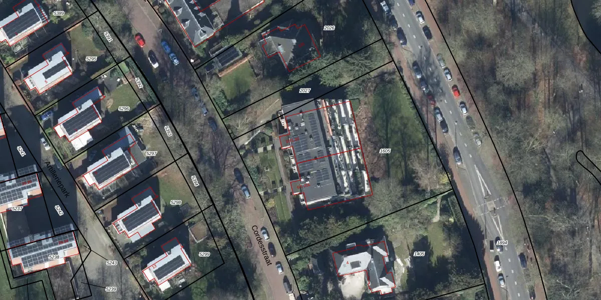 Het perceel waarop Cordesstraat 10-1 staat heeft een oppervlakte van 2684 m². Dit is een zeer groot perceel. De perceeloppervlakte wordt geregistreerd door het Kadaster. Gedetailleerde informatie over de maten van dit perceel kunt u vinden in het rapport Kadastrale kaart met maatvoering van Cordesstraat 10-1.