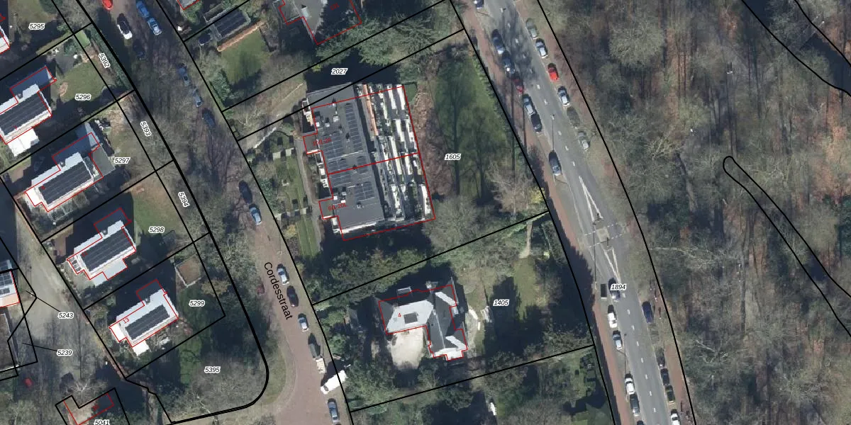 Het perceel waarop Cordesstraat 20-L staat heeft een oppervlakte van 2684 m². Dit is een zeer groot perceel. De perceeloppervlakte wordt geregistreerd door het Kadaster. Gedetailleerde informatie over de maten van dit perceel kunt u vinden in het rapport Kadastrale kaart met maatvoering van Cordesstraat 20-L.