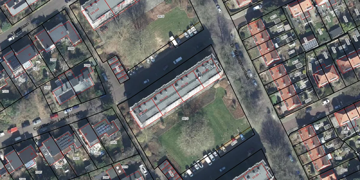 Het perceel waarop Cort van der Lindenlaan 7-3 staat heeft een oppervlakte van 2944 m². Dit is een zeer groot perceel. De perceeloppervlakte wordt geregistreerd door het Kadaster. Gedetailleerde informatie over de maten van dit perceel kunt u vinden in het rapport Kadastrale kaart met maatvoering van Cort van der Lindenlaan 7-3.