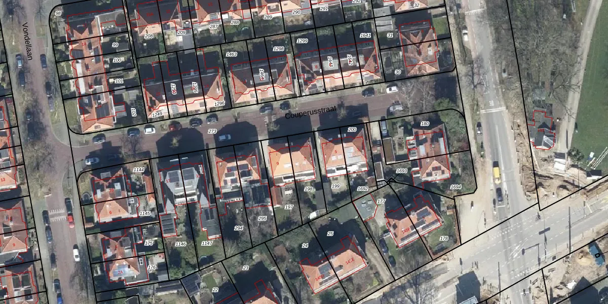 Het perceel waarop Couperusstraat 7 staat heeft een oppervlakte van 249 m². Dit is een middelgroot perceel. De perceeloppervlakte wordt geregistreerd door het Kadaster. Gedetailleerde informatie over de maten van dit perceel kunt u vinden in het rapport Kadastrale kaart met maatvoering van Couperusstraat 7.