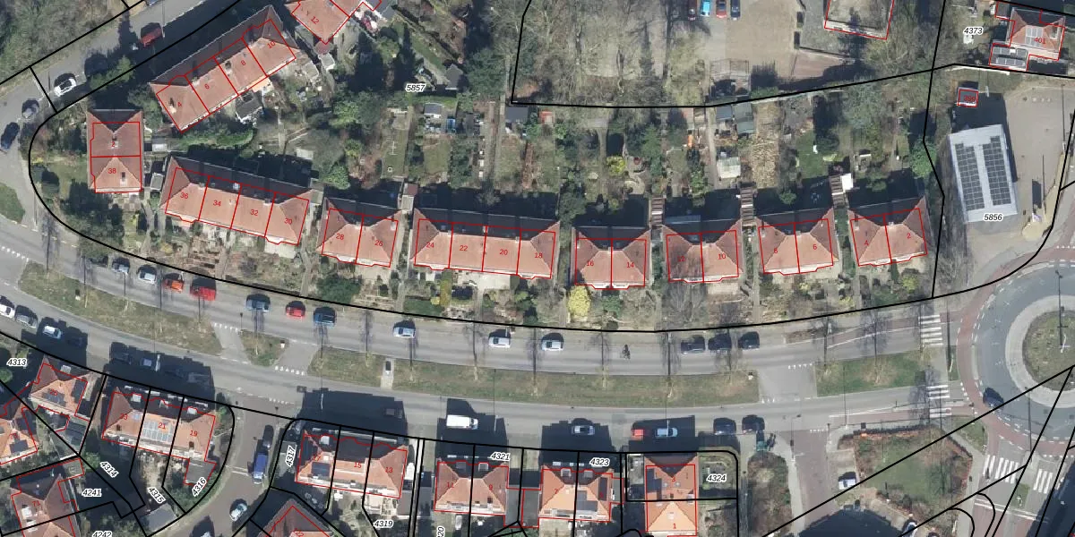 Het perceel waarop Dalweg 18 staat heeft een oppervlakte van 1,2 ha. Dit is een zeer groot perceel. De perceeloppervlakte wordt geregistreerd door het Kadaster. Gedetailleerde informatie over de maten van dit perceel kunt u vinden in het rapport Kadastrale kaart met maatvoering van Dalweg 18.