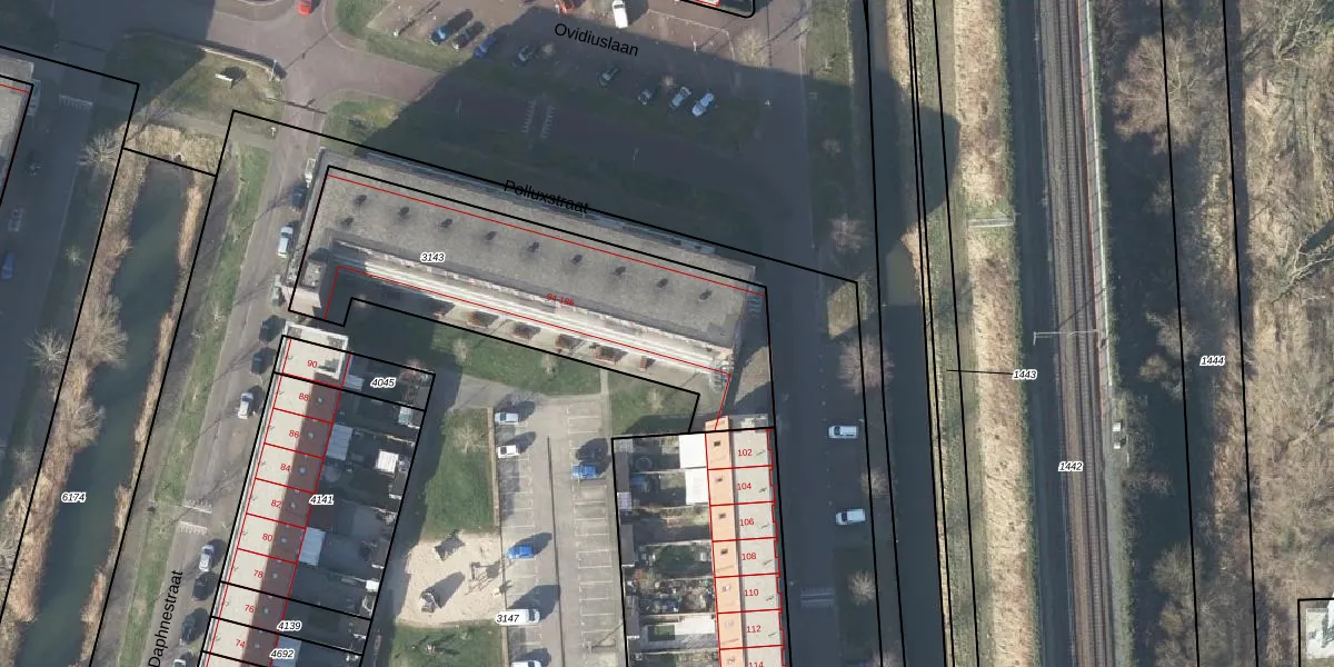Het perceel waarop Daphnestraat 144 staat heeft een oppervlakte van 1377 m². Dit is een zeer groot perceel. De perceeloppervlakte wordt geregistreerd door het Kadaster. Gedetailleerde informatie over de maten van dit perceel kunt u vinden in het rapport Kadastrale kaart met maatvoering van Daphnestraat 144.