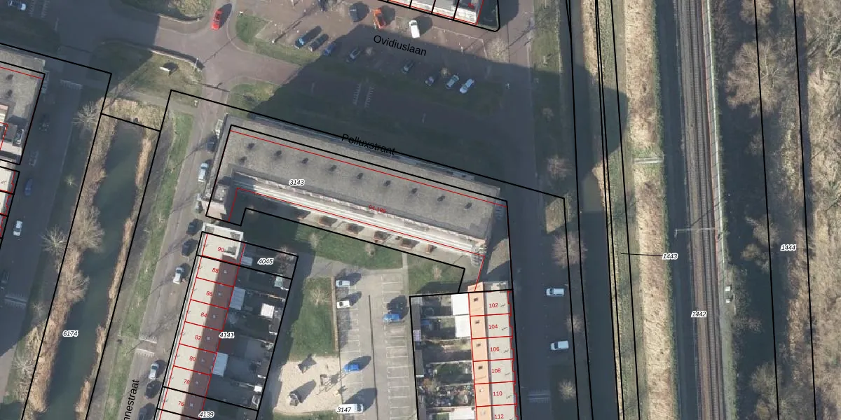Het perceel waarop Daphnestraat 182 staat heeft een oppervlakte van 1377 m². Dit is een zeer groot perceel. De perceeloppervlakte wordt geregistreerd door het Kadaster. Gedetailleerde informatie over de maten van dit perceel kunt u vinden in het rapport Kadastrale kaart met maatvoering van Daphnestraat 182.