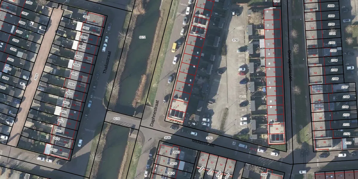 Het perceel waarop Daphnestraat 8 staat heeft een oppervlakte van 6315 m². Dit is een zeer groot perceel. De perceeloppervlakte wordt geregistreerd door het Kadaster. Gedetailleerde informatie over de maten van dit perceel kunt u vinden in het rapport Kadastrale kaart met maatvoering van Daphnestraat 8.