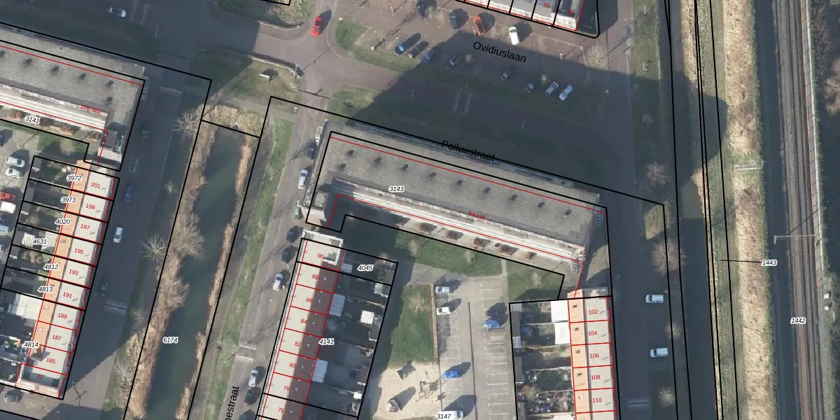 Het perceel waarop Daphnestraat 98 staat heeft een oppervlakte van 1377 m². Dit is een zeer groot perceel. De perceeloppervlakte wordt geregistreerd door het Kadaster. Gedetailleerde informatie over de maten van dit perceel kunt u vinden in het rapport Kadastrale kaart met maatvoering van Daphnestraat 98.