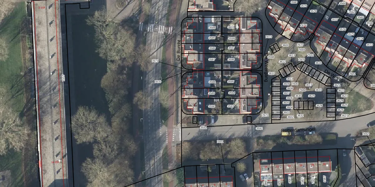 Gebruik de zoekbalk of klik op een perceel voor informatie over de adressen binnen dit perceel.