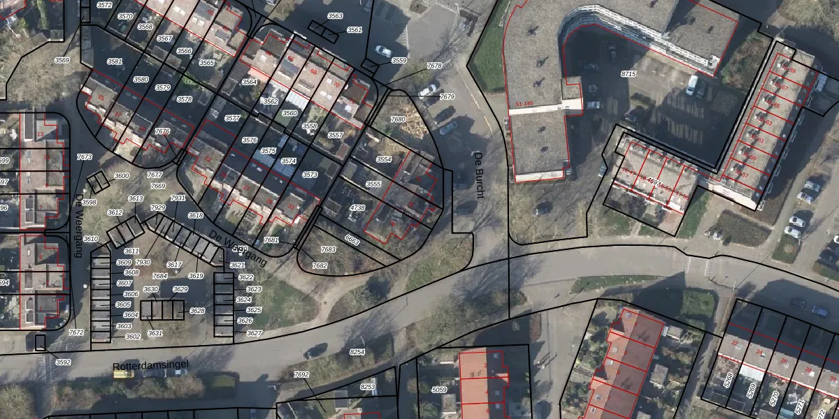 Gebruik de zoekbalk of klik op een perceel voor informatie over de adressen binnen dit perceel.