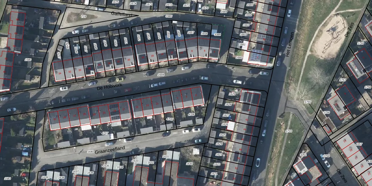 Het perceel waarop De Hooivork 5 staat heeft een oppervlakte van 413 m². Dit is een groot perceel. De perceeloppervlakte wordt geregistreerd door het Kadaster. Gedetailleerde informatie over de maten van dit perceel kunt u vinden in het rapport Kadastrale kaart met maatvoering van De Hooivork 5.