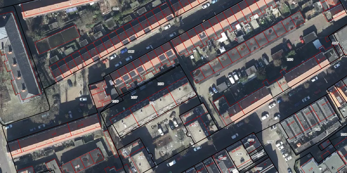 Het perceel waarop De Kapel 43 staat heeft een oppervlakte van 985 m². Dit is een groot perceel. De perceeloppervlakte wordt geregistreerd door het Kadaster. Gedetailleerde informatie over de maten van dit perceel kunt u vinden in het rapport Kadastrale kaart met maatvoering van De Kapel 43.