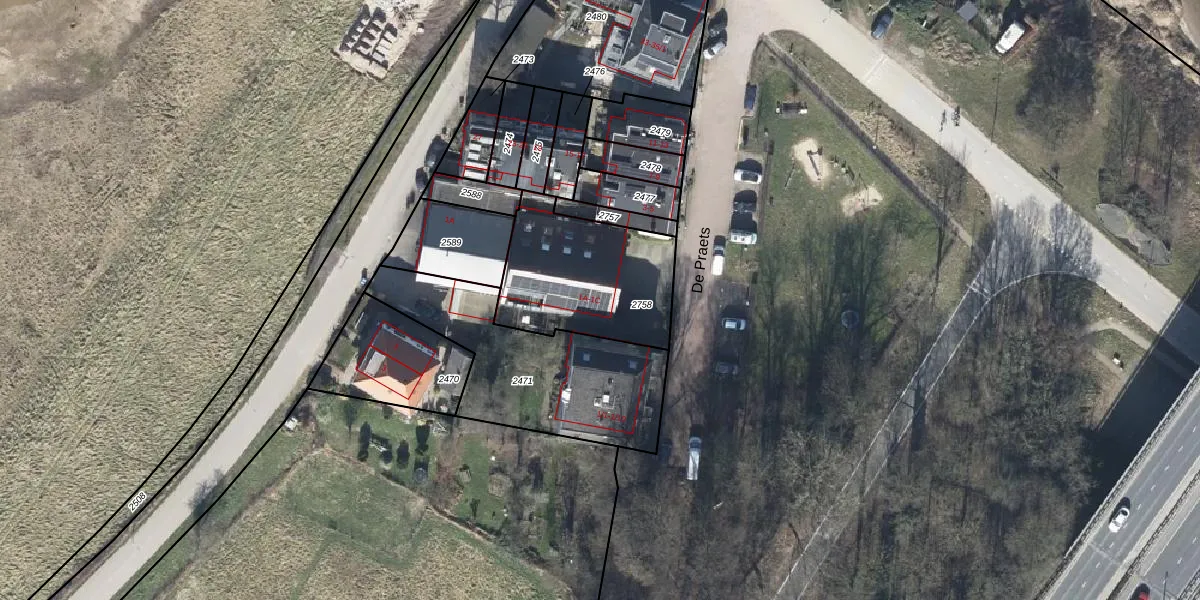 Het perceel waarop De Praets 1-A staat heeft een oppervlakte van 555 m². Dit is een groot perceel. De perceeloppervlakte wordt geregistreerd door het Kadaster. Gedetailleerde informatie over de maten van dit perceel kunt u vinden in het rapport Kadastrale kaart met maatvoering van De Praets 1-A.